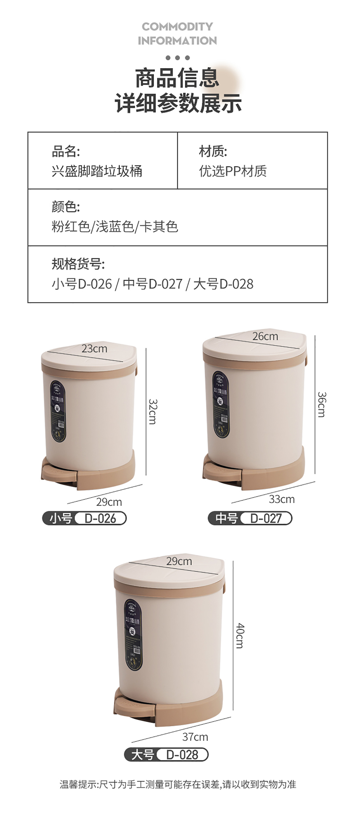 Size: XS-D026:230*290*320mm XS-D027:260*330*360mm XS-D028:290*370*400mm