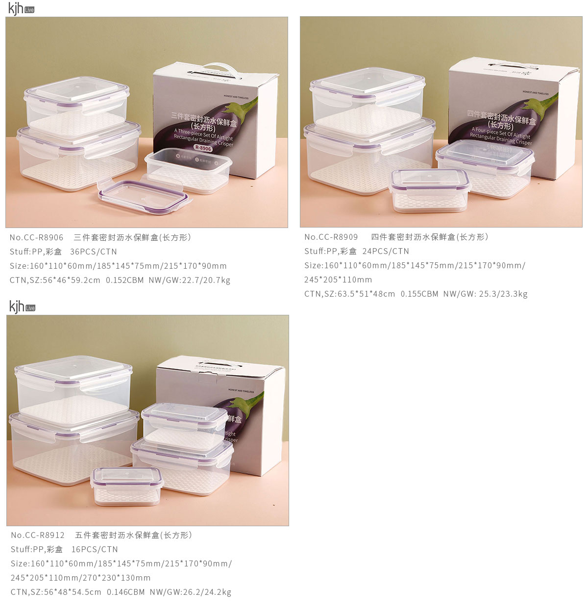 三件套/四件套/五件套密封瀝水保鮮盒(長方形)
