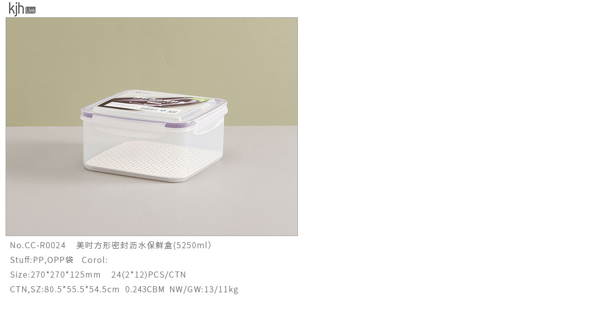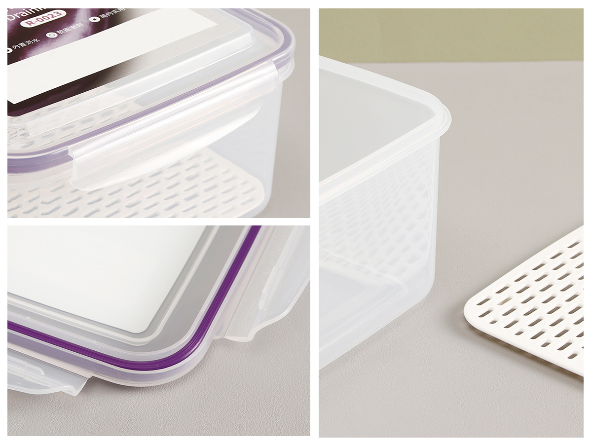 美時(shí)方形密封瀝水保鮮盒(500ml/1100ml/2100ml/3380ml/5250ml)