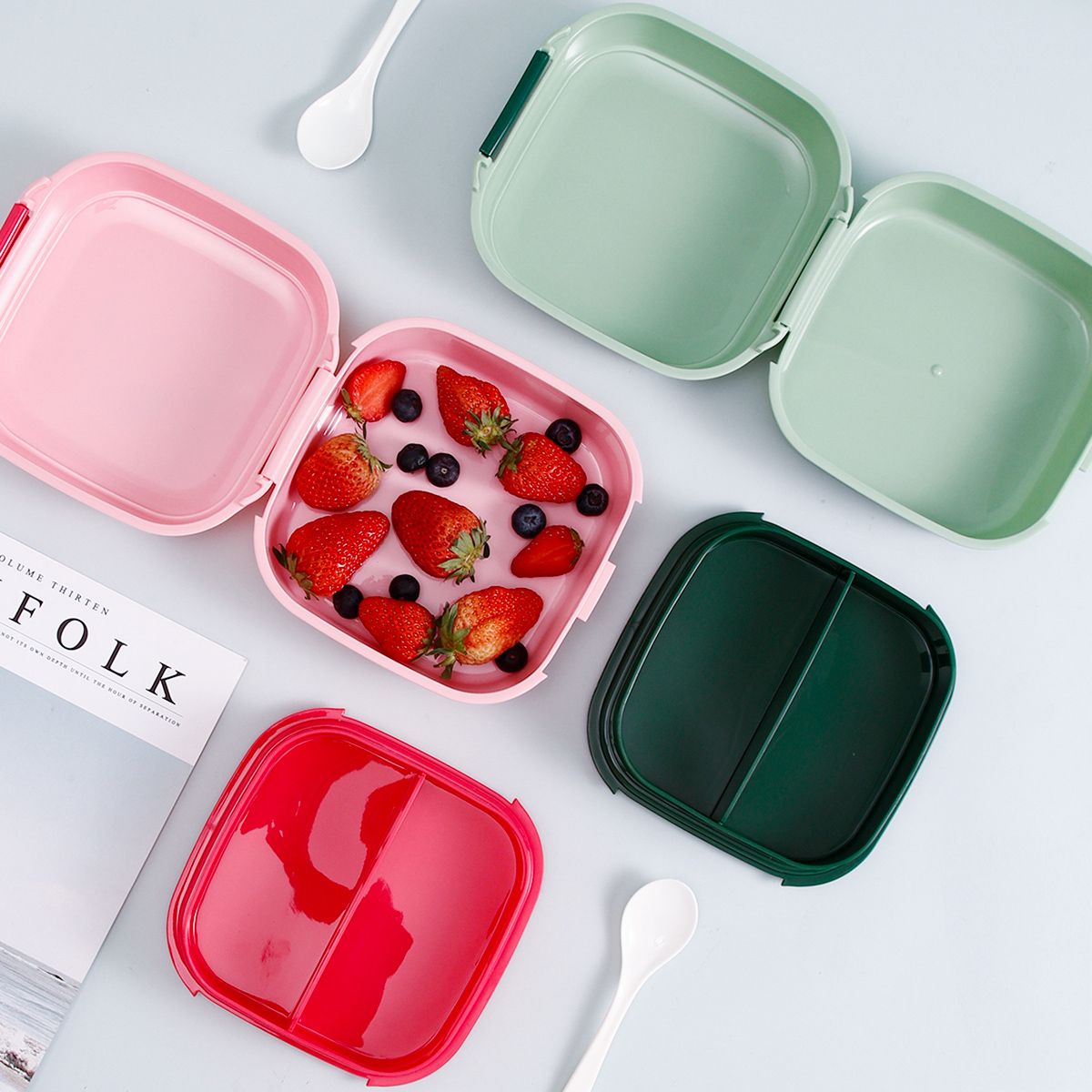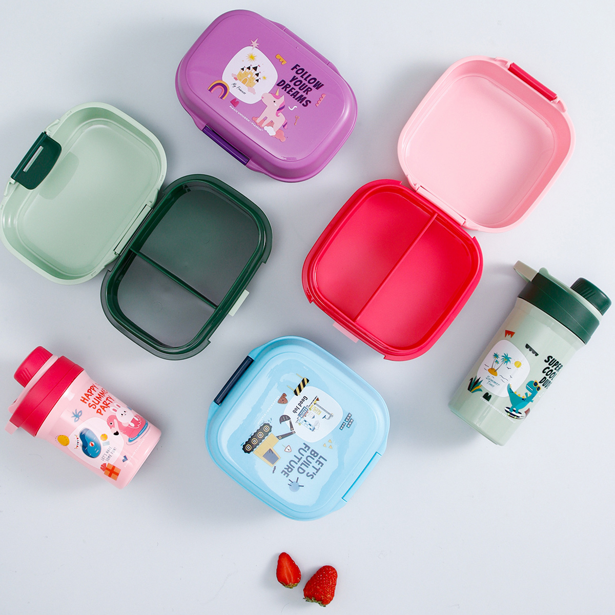 童彩翻蓋便當盒+運動水壺套裝(長方形/正方形1000ml+水杯350ml)
