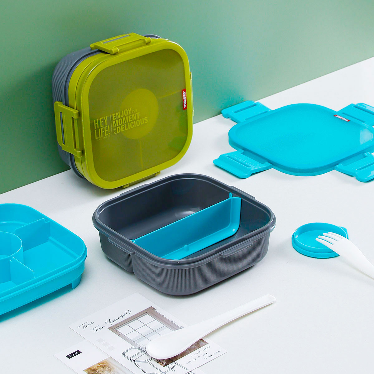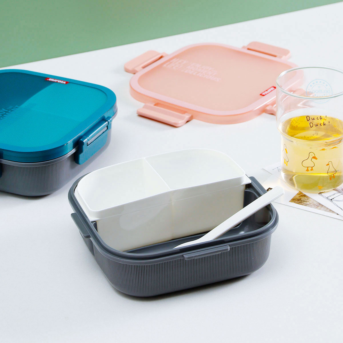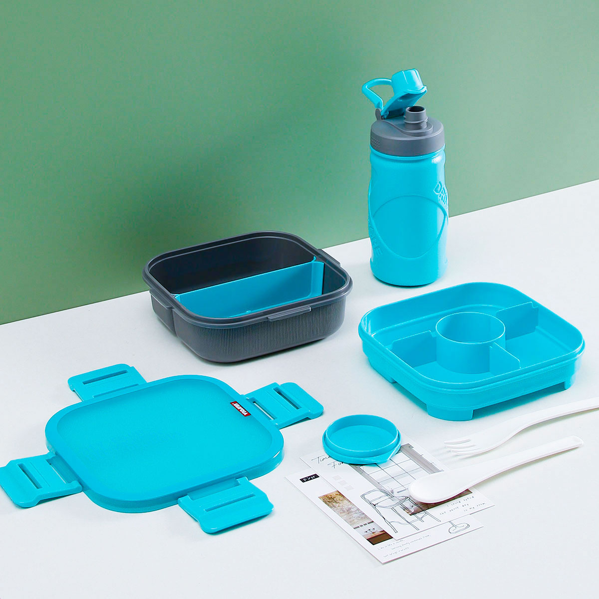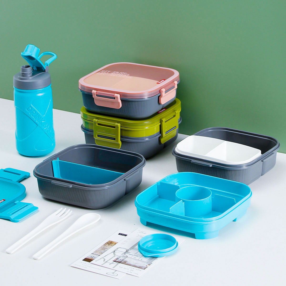 寰彩密封單層3格/雙層6格飯盒(正方款)+運動水壺套裝/單個
