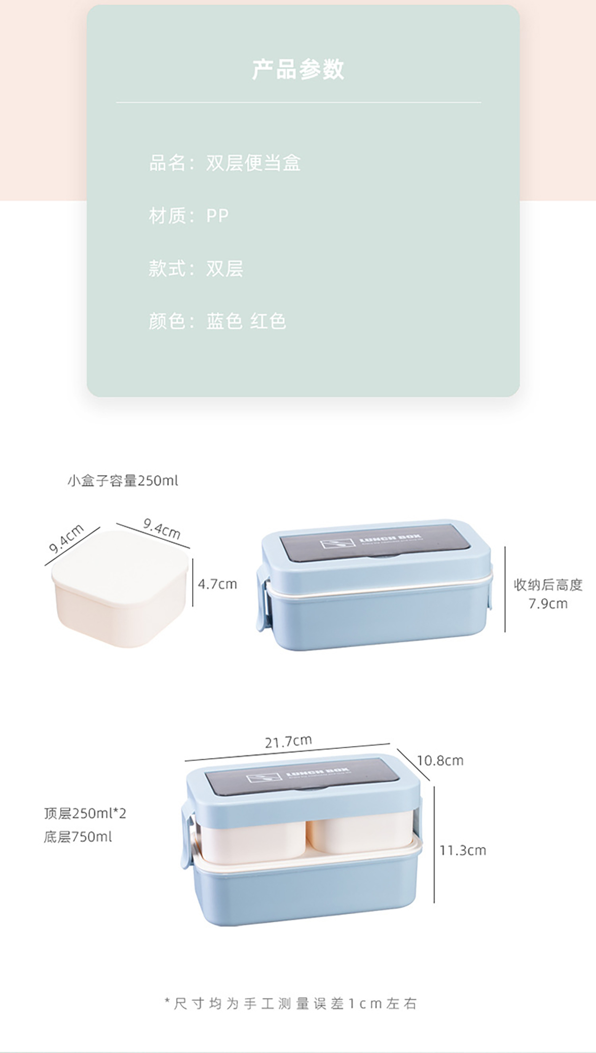Size: 收納成單層:217*108*79mm 展開(kāi)成雙層:217*108*113mm