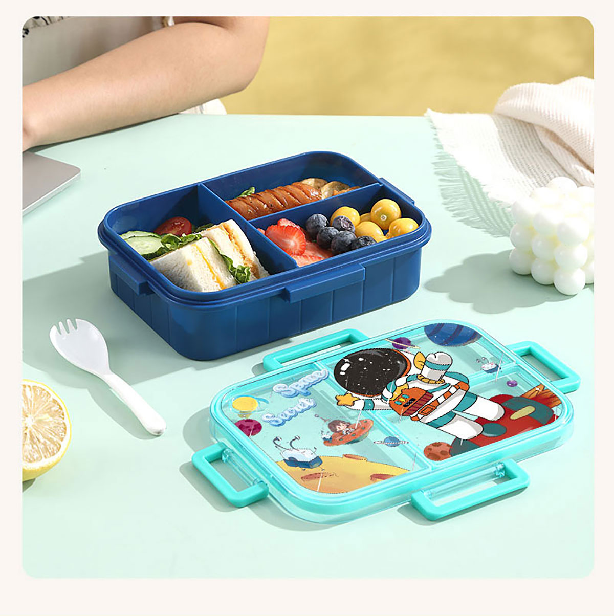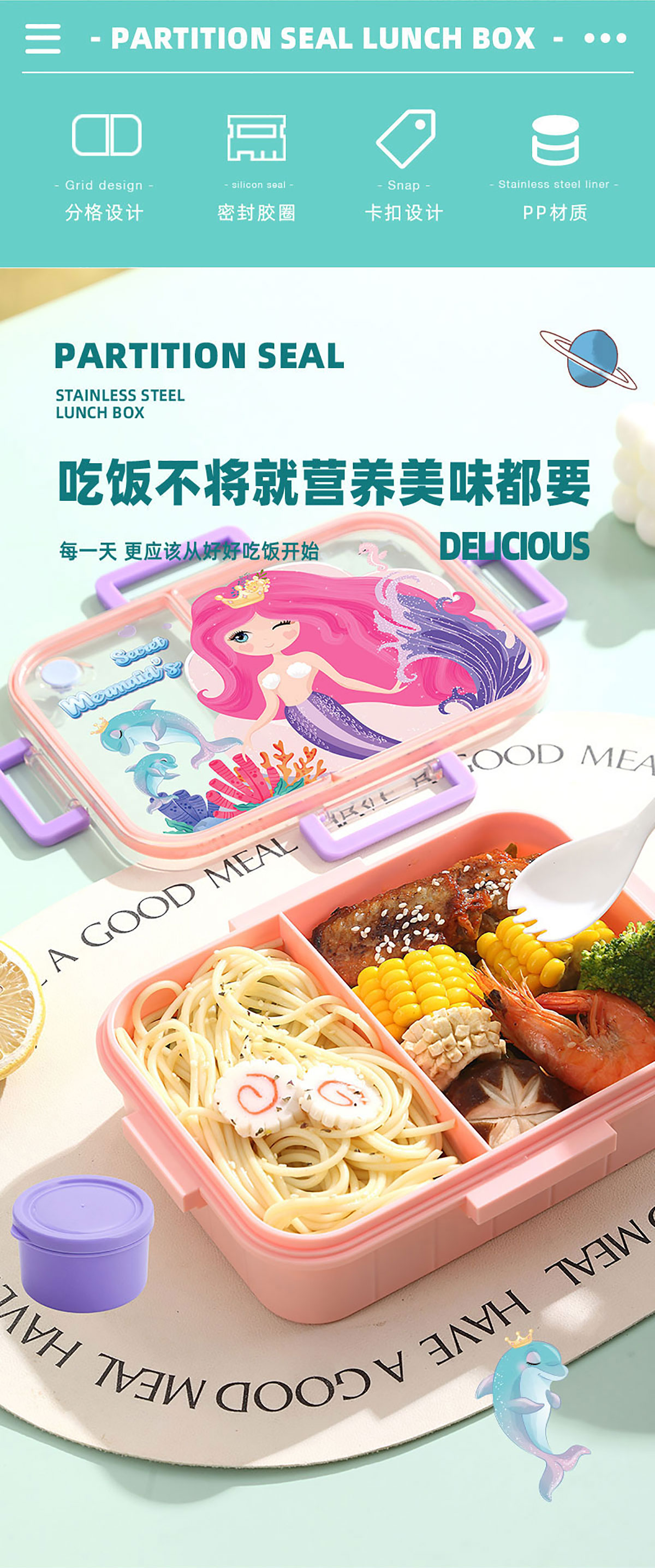 Size: AQX-2631:226*168*65mm/塑料2格1200ml+醬料杯80ml AQX-2632:226*168*65mm/塑料3格1200ml+醬料杯80ml
