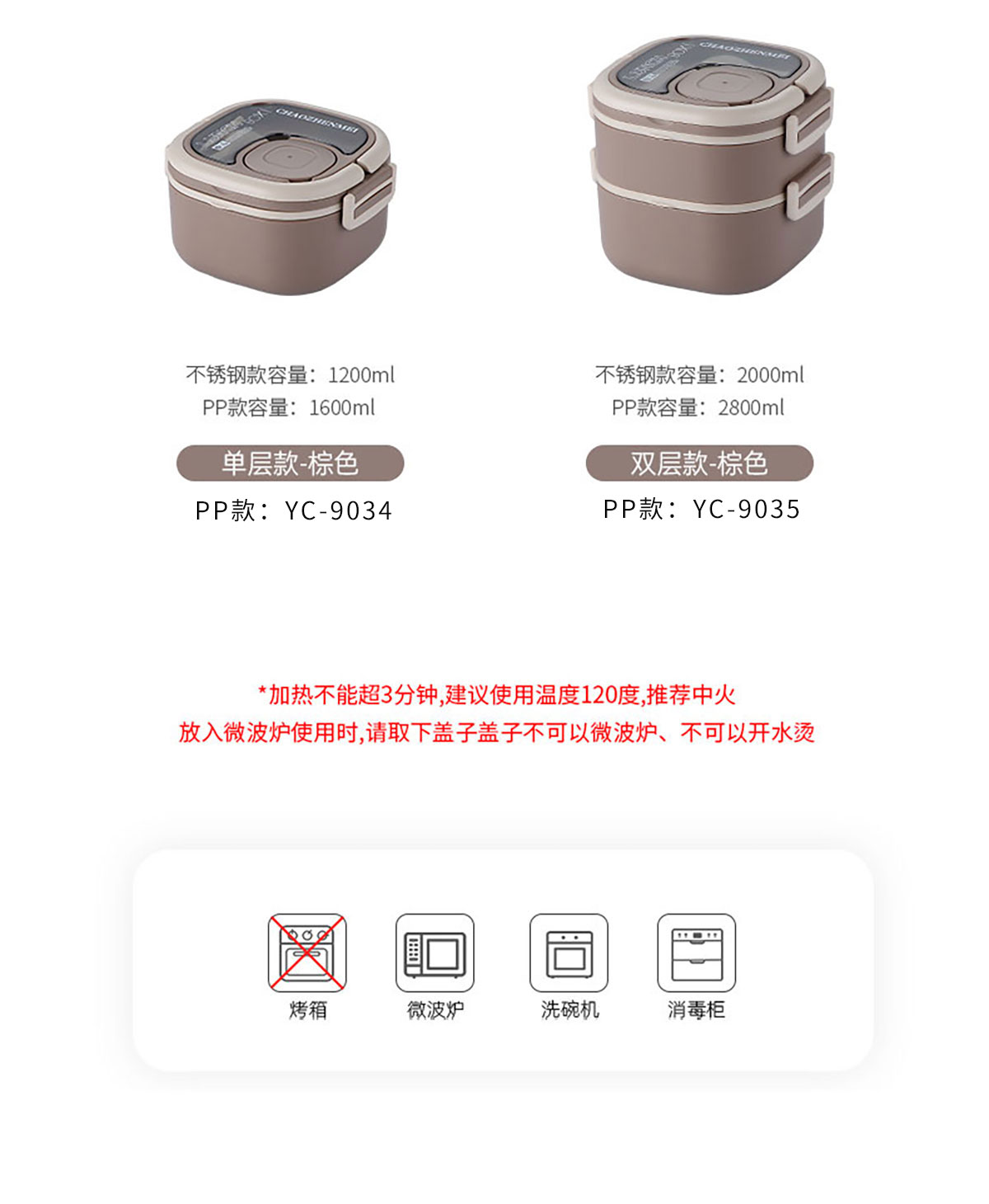 Size: YC-9034(單層):185*185*112mm/1600ml YC-9035(雙層):185*185*170mm/2800ml