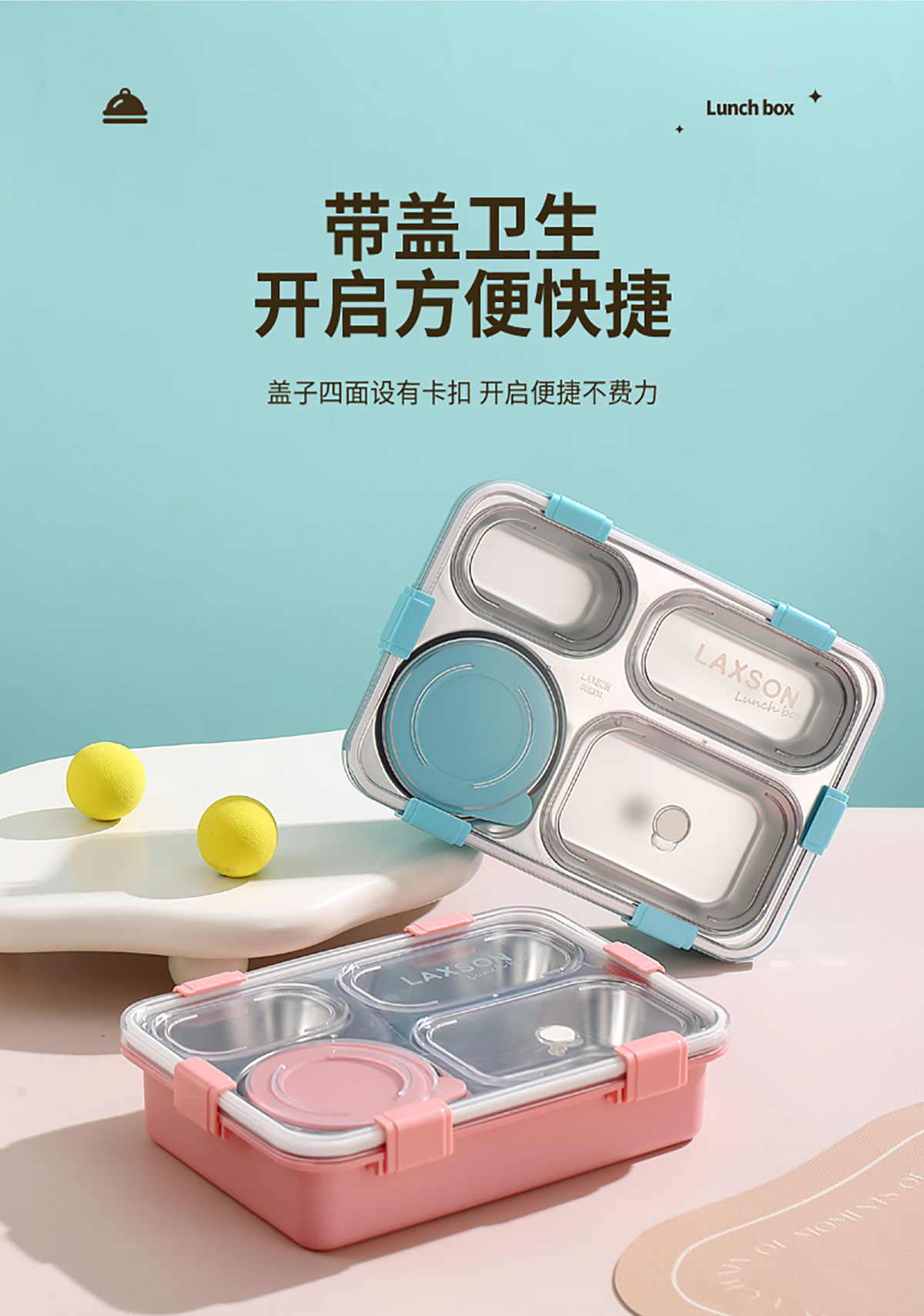 LX-7072A(四格+不銹鋼碗):254*182*65mm