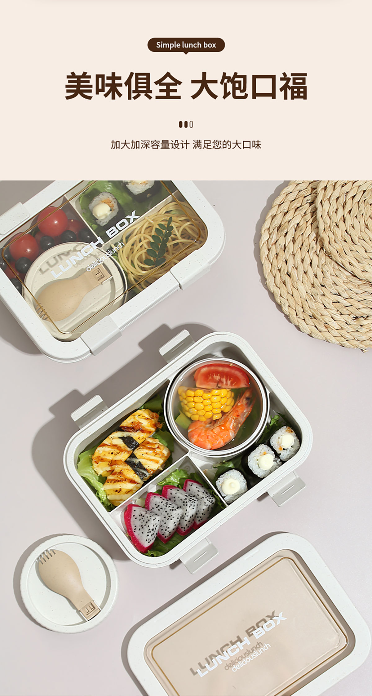 Size: 飯盒:215*160*71mm/1250ml 湯碗:直徑96*51mm/250ml