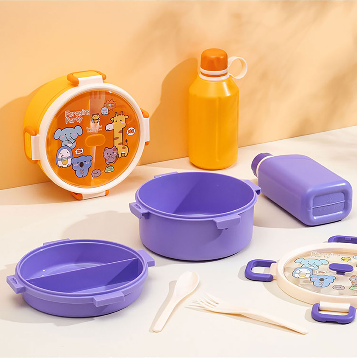 尚趣圓形雙層飯盒(1100ml)/+圓形/方形運(yùn)動(dòng)水壺(500ml)