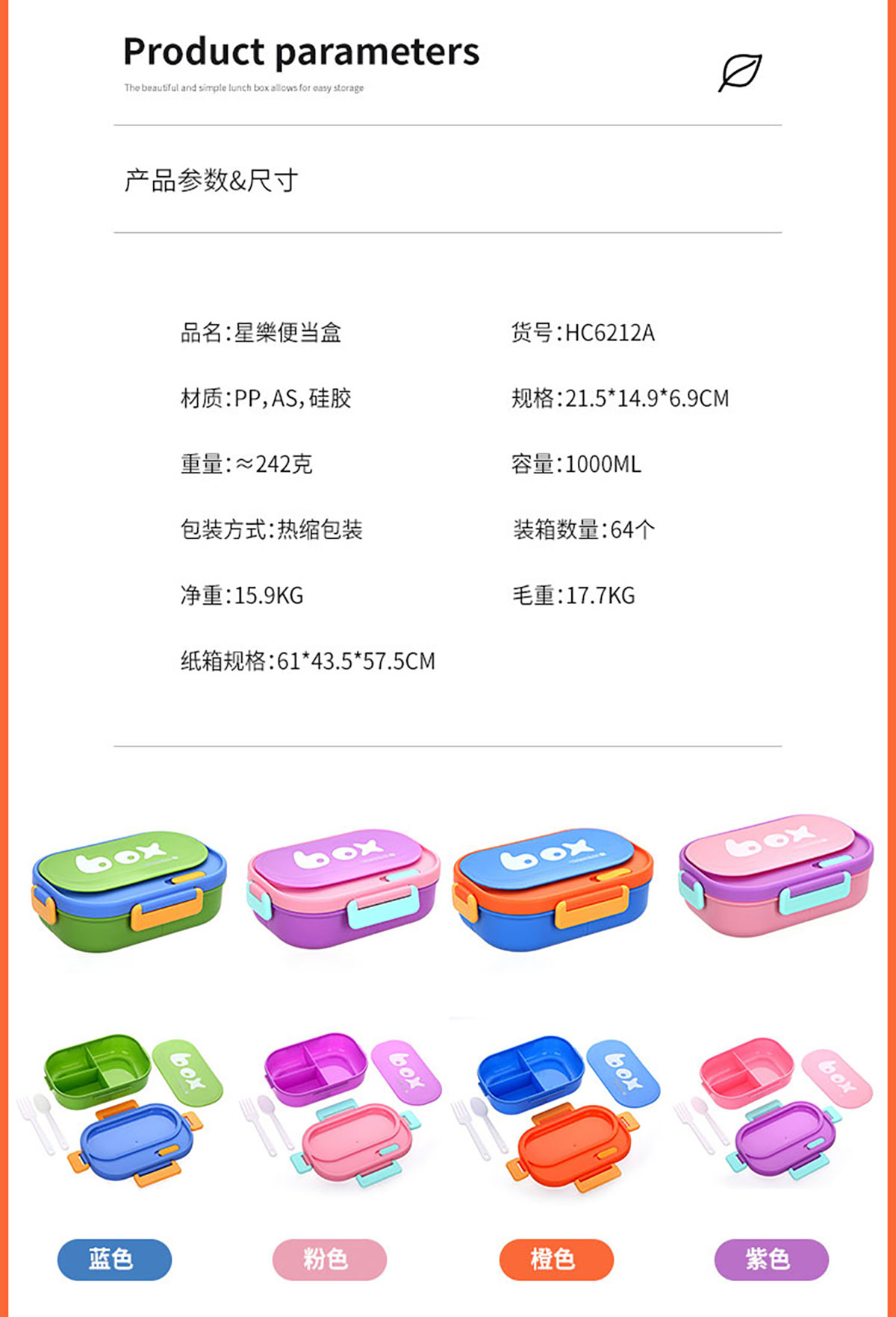 星樂(lè)便當(dāng)盒(三格PP款/PP加高款/不銹鋼矮款/不銹鋼加高款/水杯套裝)
