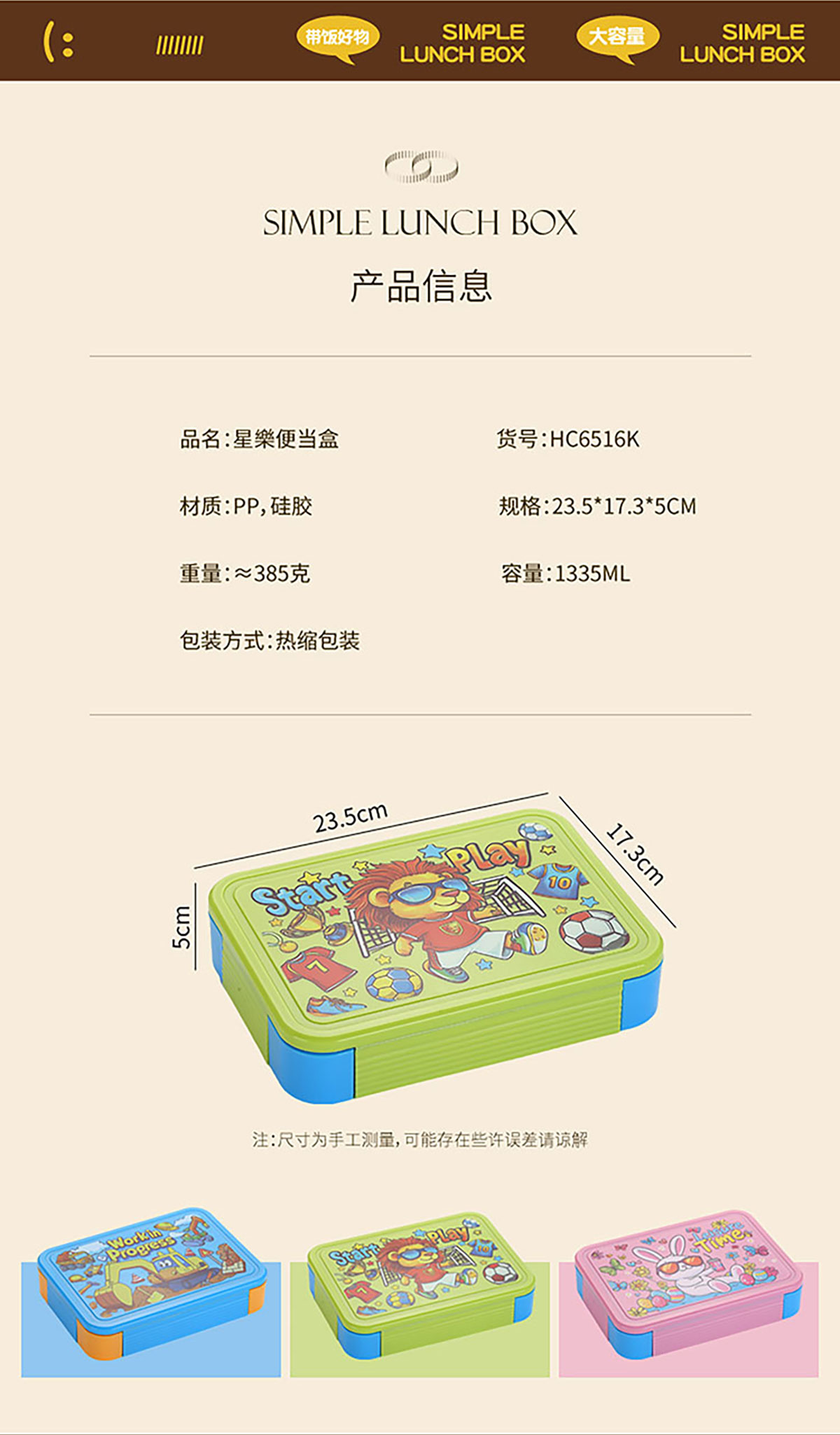 Size: 235*173*50mm/1335ml