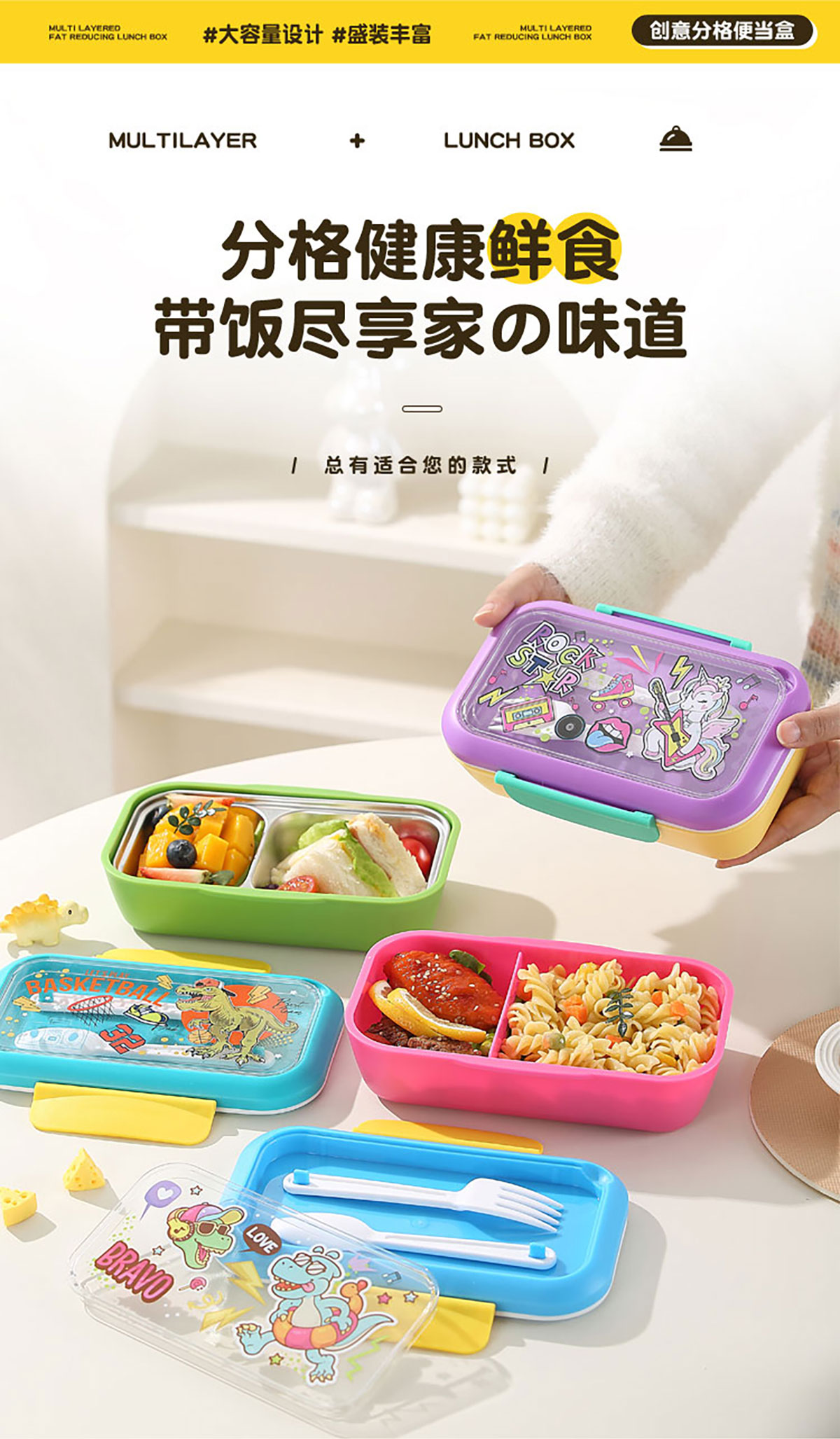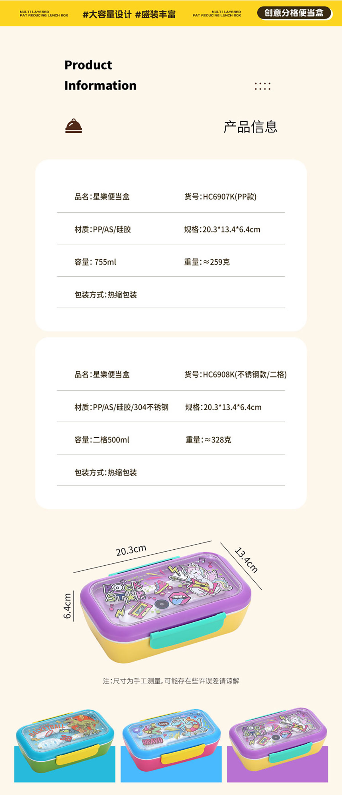 星樂卡通便當(dāng)盒PP款755ml/不銹鋼款500ml
