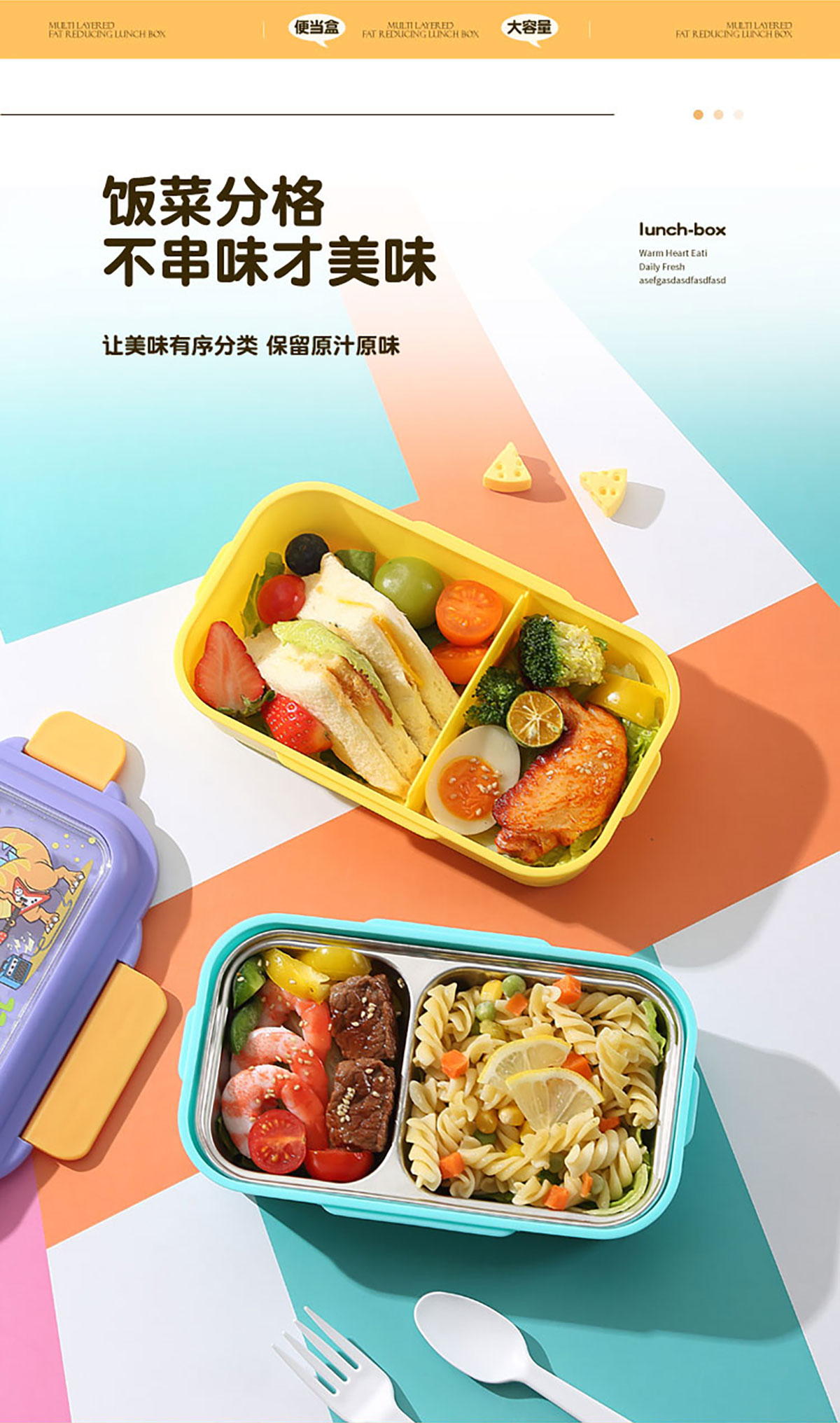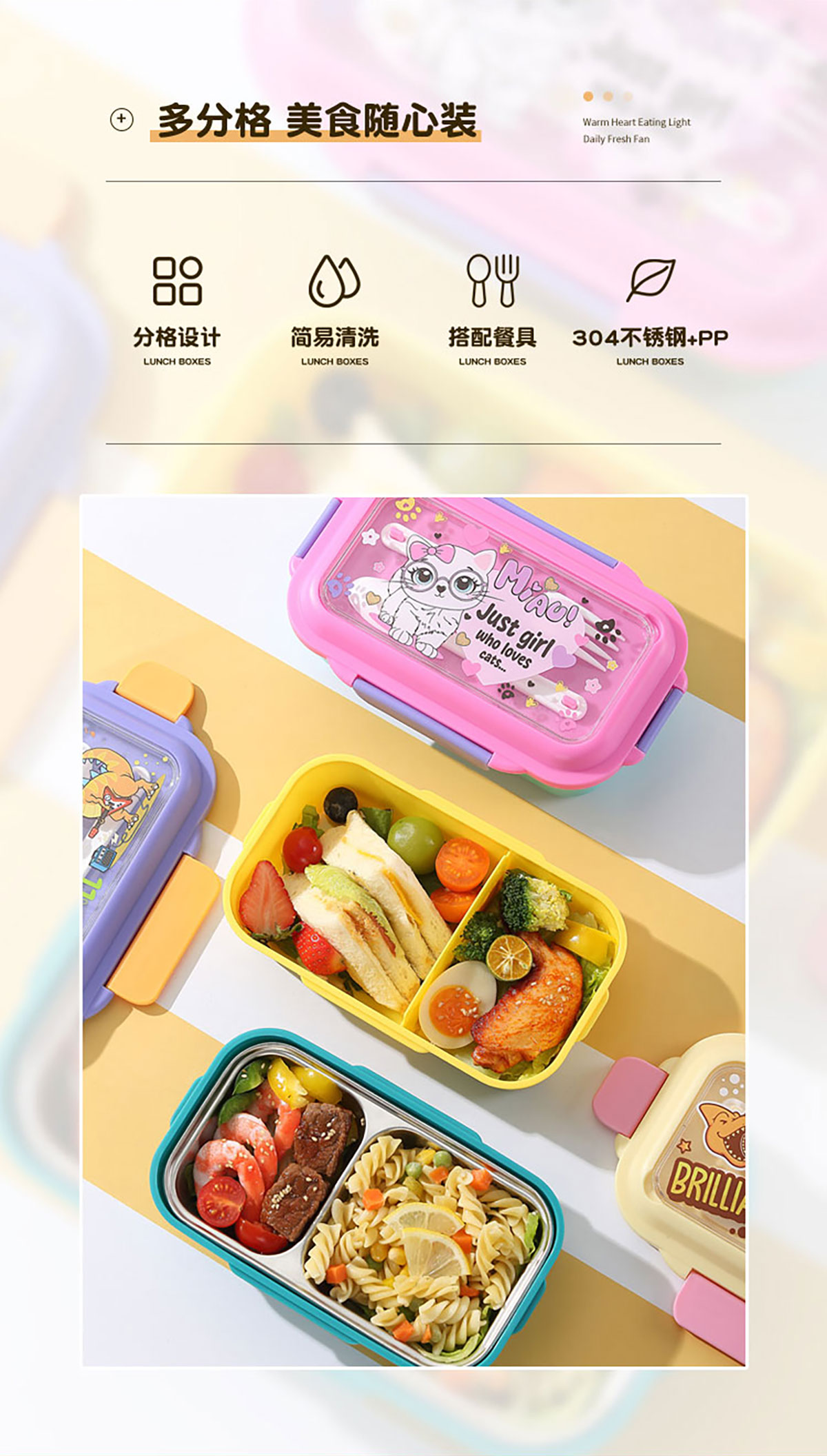 星樂卡通便當(dāng)盒PP款二格/不銹鋼款一格/二格