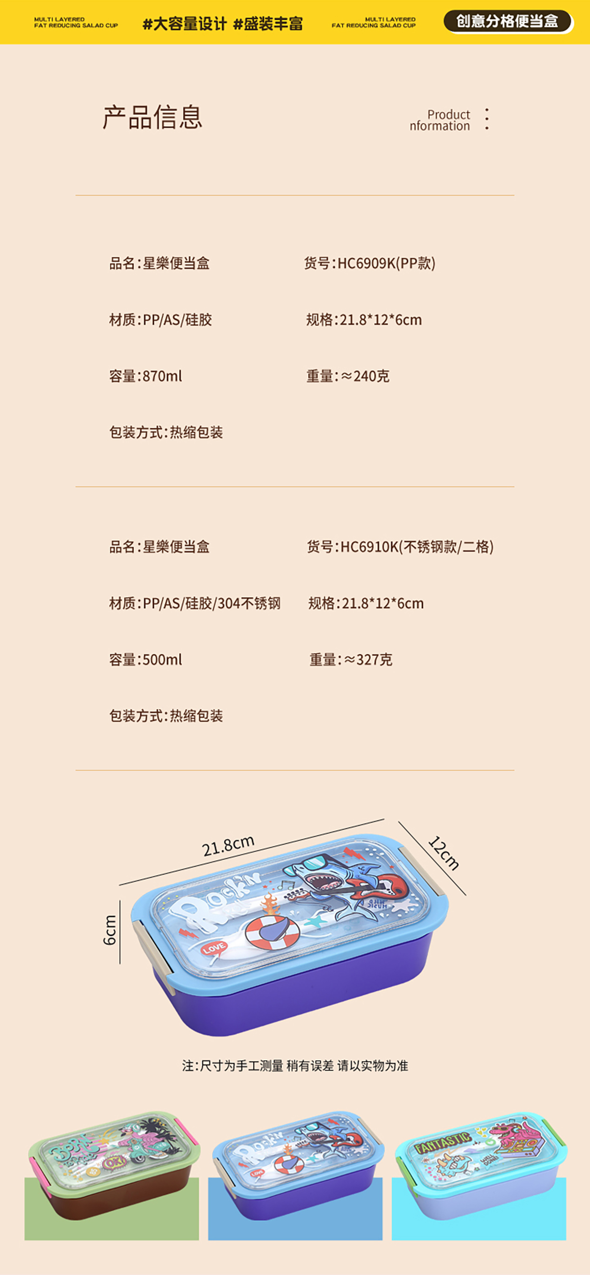 星樂卡通便當盒PP款750ml/不銹鋼款500ml